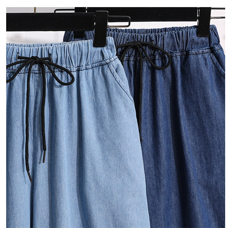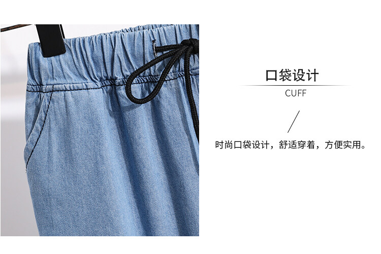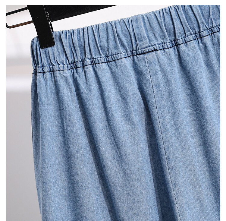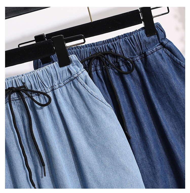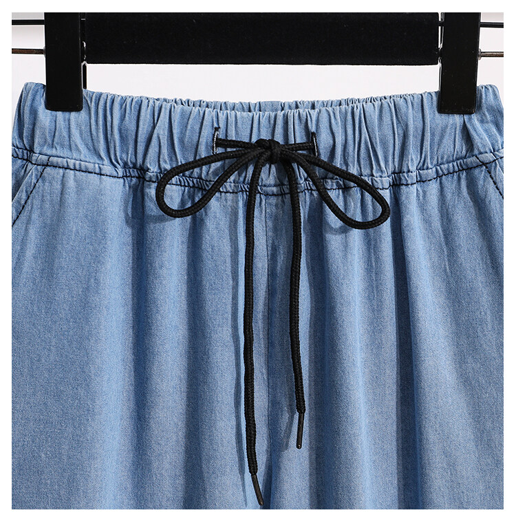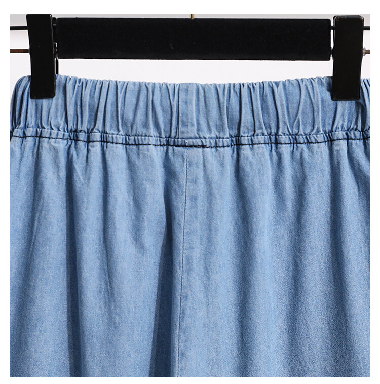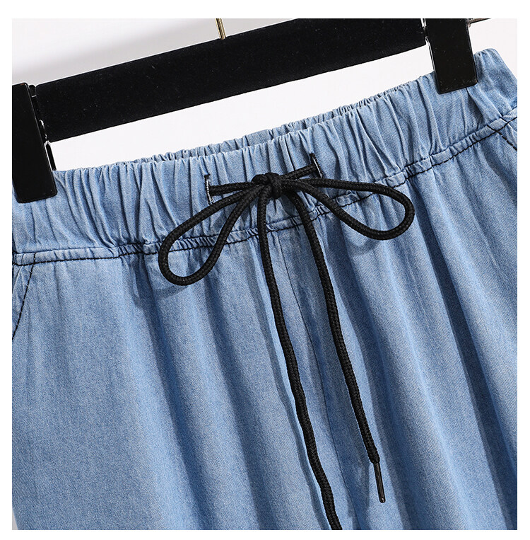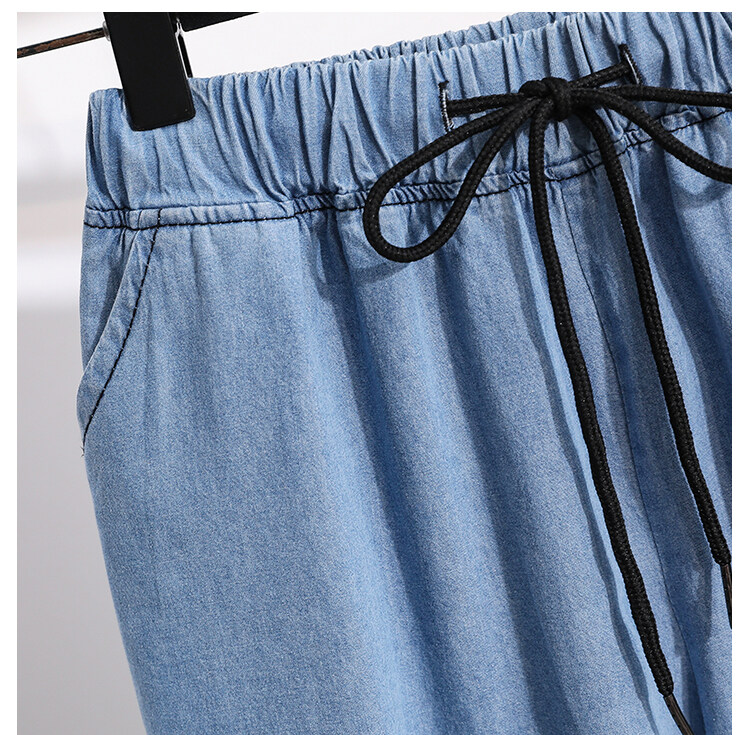 Plus Size Elastic Waist Thin Casual Summer 7 Points Denim Capri Pants Cropped Jeans for Women S M L XL XXL XXXL 4XL 5XL