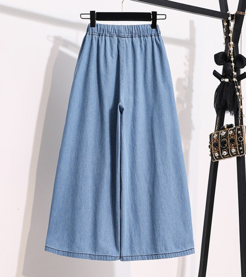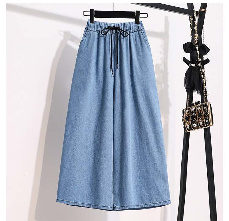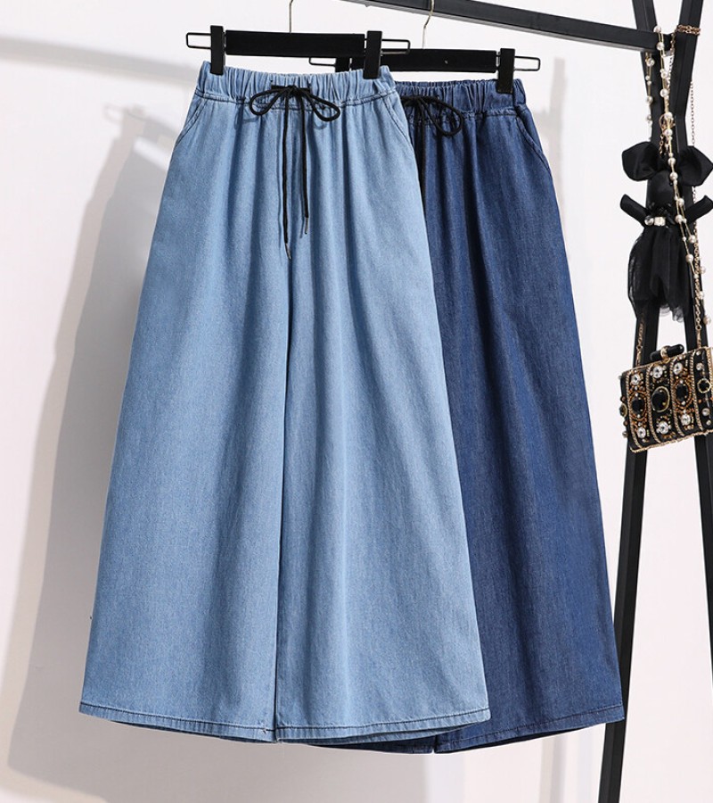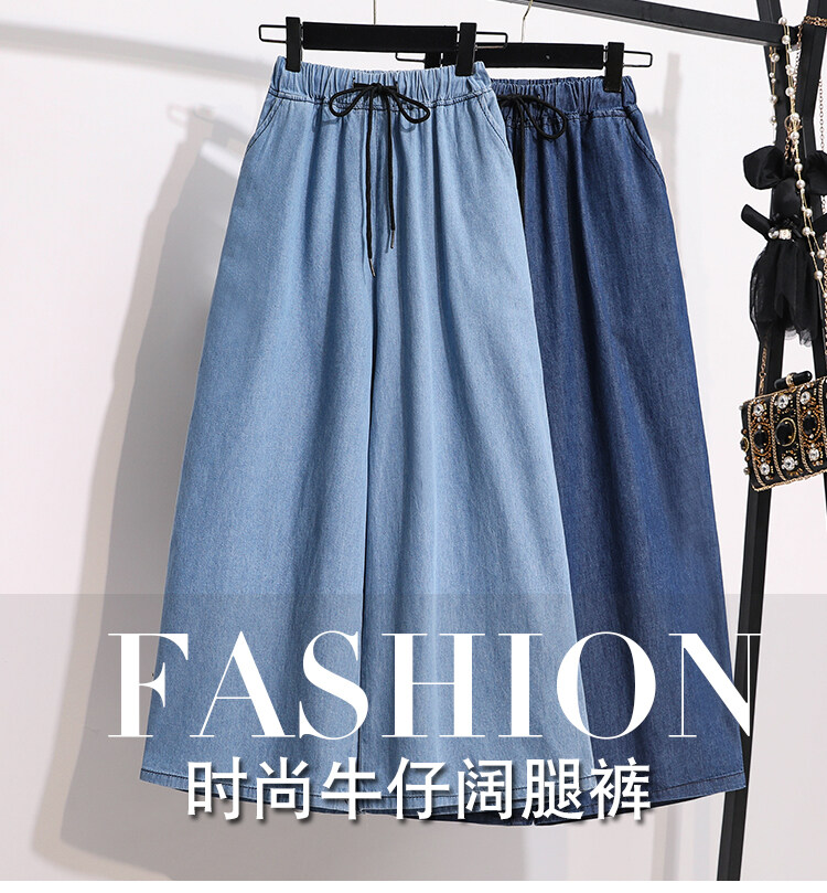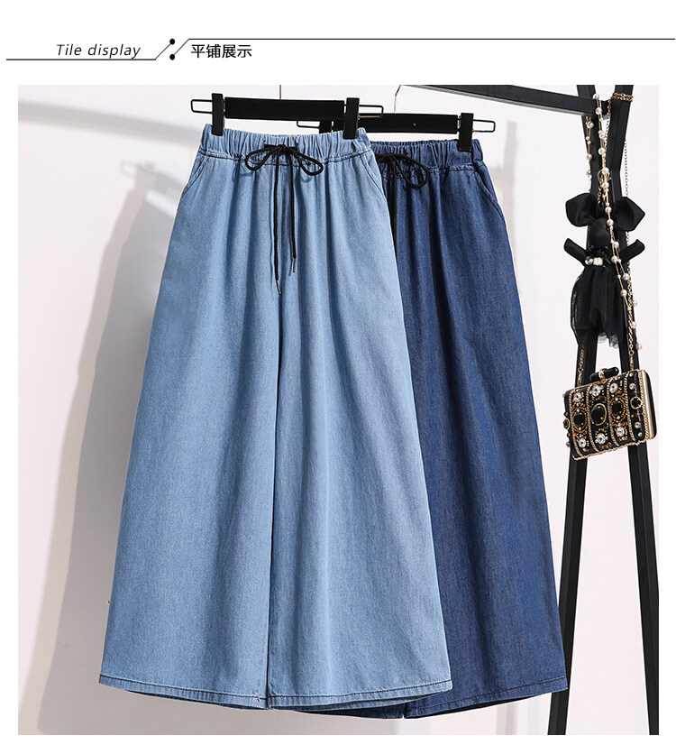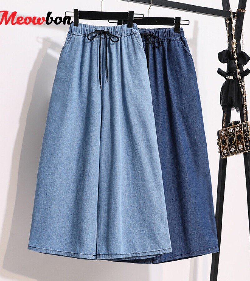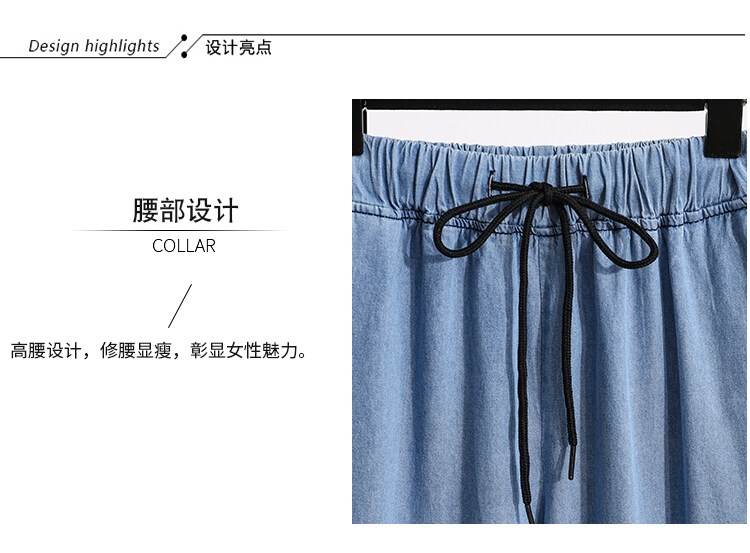 Plus Size Elastic Waist Thin Casual Summer 7 Points Denim Capri Pants Cropped Jeans for Women S M L XL XXL XXXL 4XL 5XL