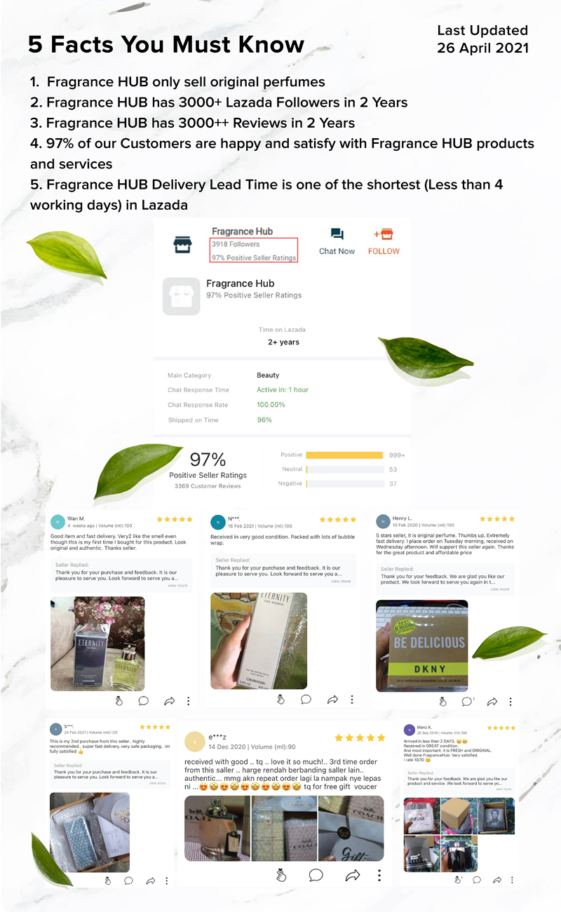 Do give us a chance to serve you. We guarantee you will definitely be satisfied with our perfume(s) and be back again for more next time.