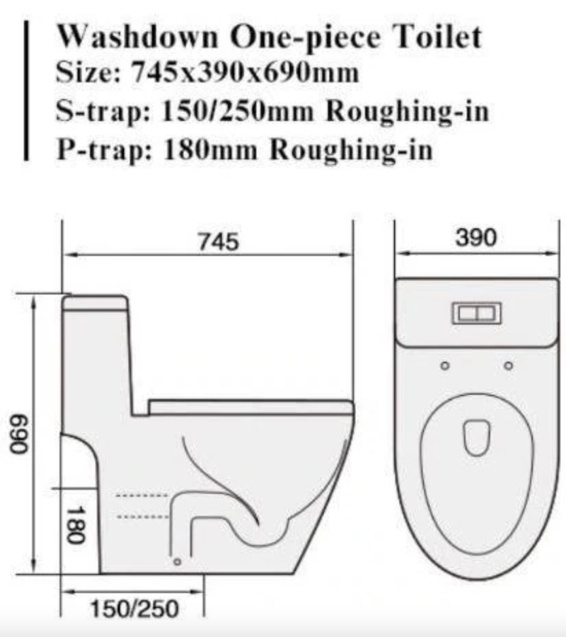 - 180mm P-Trap rough in