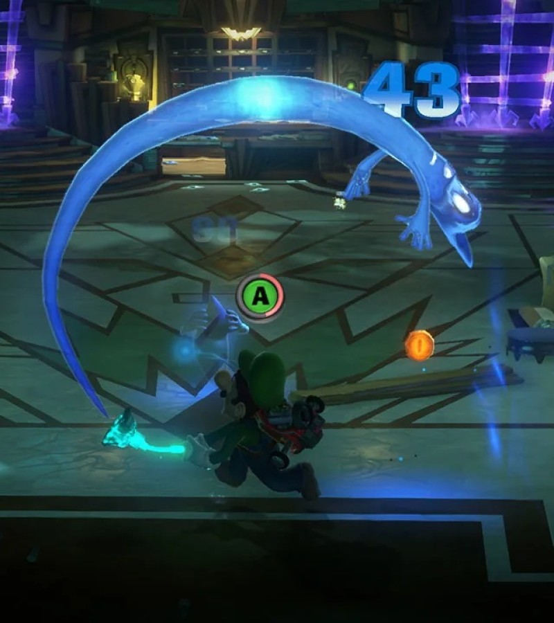 Luigi’s invited to the towering Last Resort hotel, but when Mario and friends go missing, our green-clad hero will have to conquer his fears to save them! Slam, blow away, and vacuum up ghosts with the all-new Poltergust G-00, and join forces with Gooigi to overcome the puzzling contraptions and mischievous boss on each themed floor. And that’s just the Last Resort. Enter the ScareScraper for 8-player local wireless co-op gameplay. See if you can defeat all the ghosts, rescue all the toads, or clear other objectives before time runs out…in the ScareScraper! And for more mini-game madness, compete on teams at the ScreamPark! Whether you play with friends or wander the hotel alone, you’ll be sucked in by the atmospheric music and ghoulish décor of every cobwebby corner you explore. Why not take in the cinematic sights and sounds with a friend? In the main adventure, you and a friend can play together as Luigi and Gooigi in two-player co-op! Gooigi can walk on spikes, slip through tight spaces, and help Luigi overcome obstacles he can’t tackle alone. Never hurts to have a friend in this hotel; it may not be very spooky, but Luigi begs to differ!